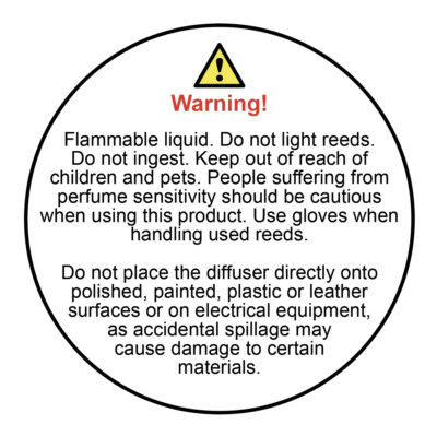 CLP Labels for Reed Diffusers - Non Hazardous & Augeo Base | - Glow CLP Our CLP labels for diffusers are printed on A4 sheets, containing 24 labels per sheet. Each round label is 45mm in size. We design and print diffuser clp labels for a wide range of fragrance oil suppliers. Order your diffuser clp labels today for fast delivery. Showing the single result CLP Labels for Diffusers £ 0.99