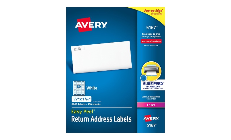 Avery Easy Peel® Return Address Labels - 5167 - Template - 80 labels ... Avery ® Address Labels Template with Easy Peel ® for Laser Printers, 1¾" x ½" 5167 Avery Design & Print Add logos, images, graphics and more Thousands of free customizable templates Mail Merge to quickly import entire contact address list Free unlimited usage, no download required START DESIGNING UPLOAD YOUR OWN ARTWORK